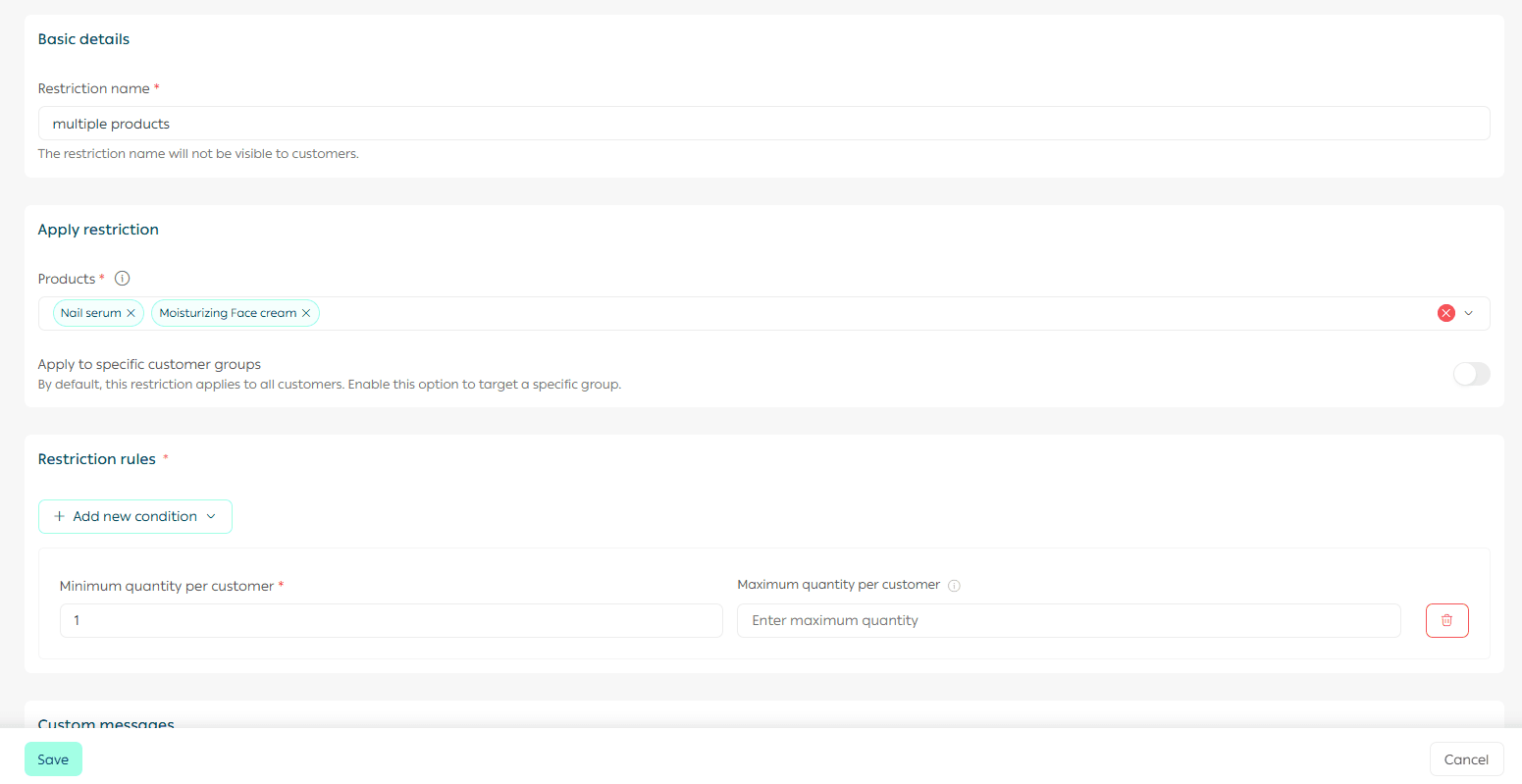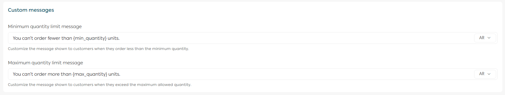 You can edit these messages to match your store tone or the nature of the product, ensuring clear and friendly communication with customers.