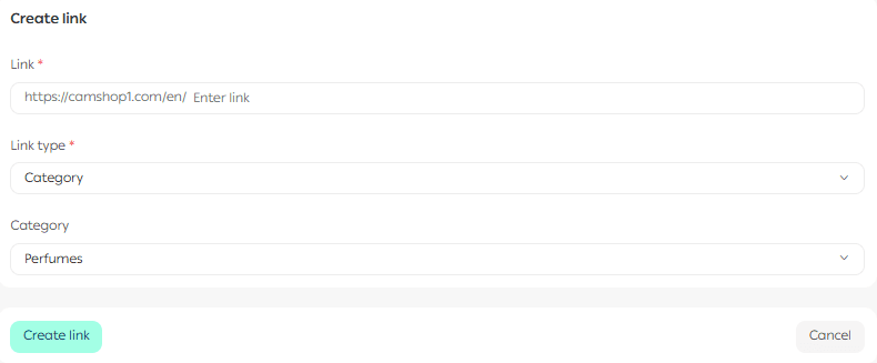 If the link type is Category, search for and select the category you want the link to open, such as Perfumes.