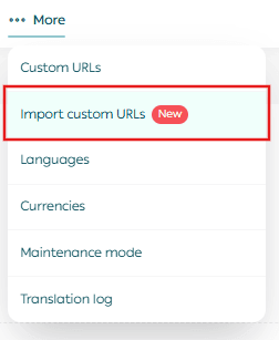 - From the Custom URLs page, click More, then select Import Custom URLs.
