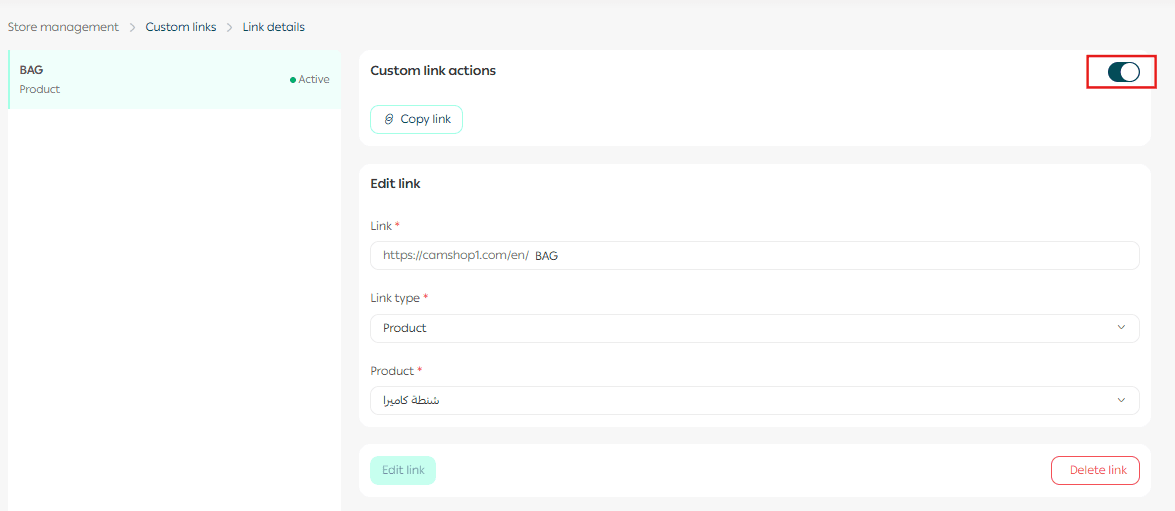 Custom links support Arabic, English, and encoded formats without routing issues.