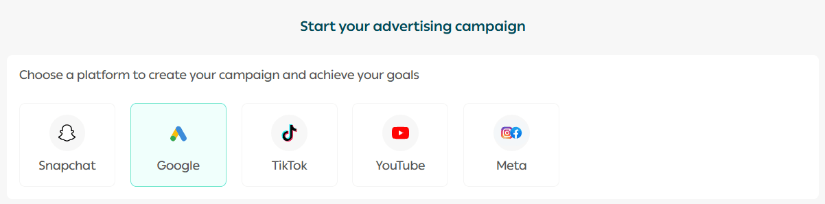 2. Select Google as the advertising platform.