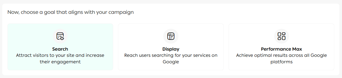 🎯 Tip: If you’re looking for quick results from users with clear intent, start with a Search campaign. If your goal is brand awareness and wider reach, a Display campaign is the better choice.