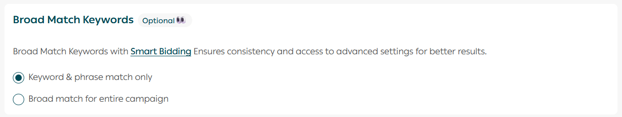 You can choose to use broader keyword matching for wider reach.