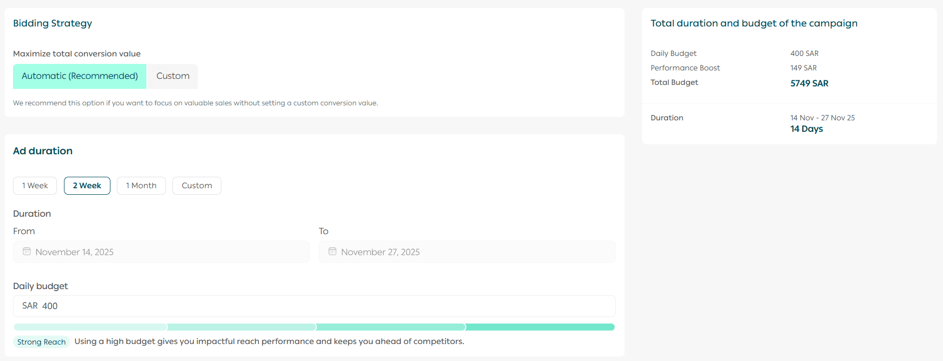 - Manual CPC: Set a fixed CPC between SAR/AED 1–30 per click