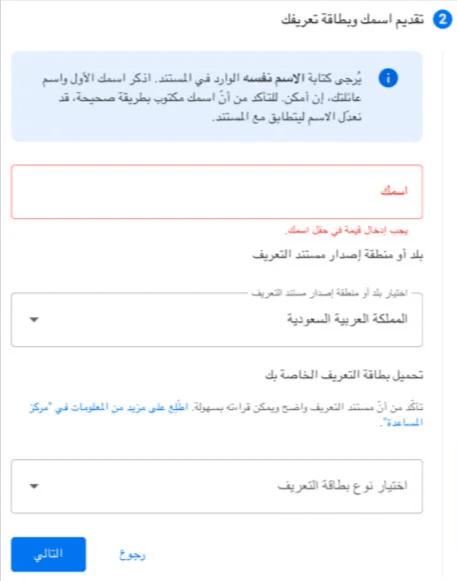 ⚠️ After this step, you’ll be required to submit documents that match these details exactly.