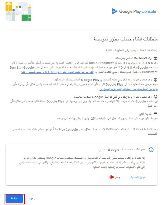 Go to Google Play Console and start registration using:
