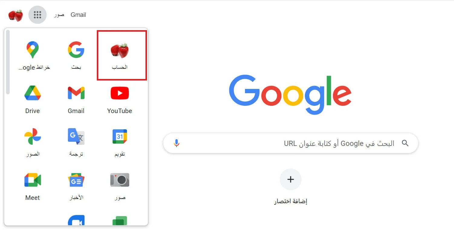 - From Google homepage, open Apps → Account