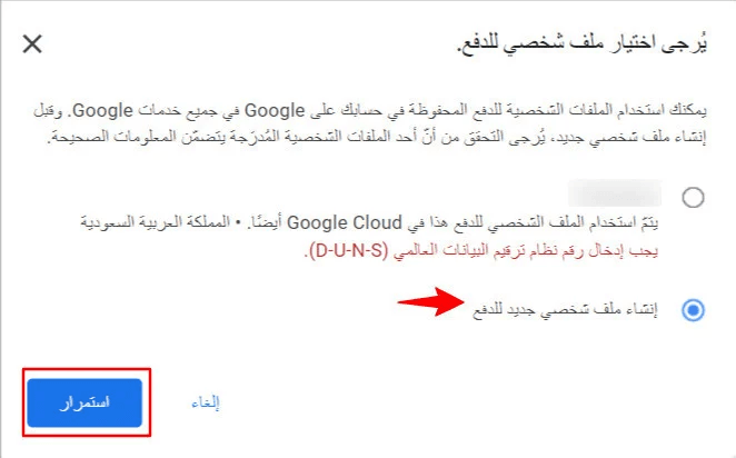 Choose an existing payment profile or click Create a new payment profile (recommended for companies).