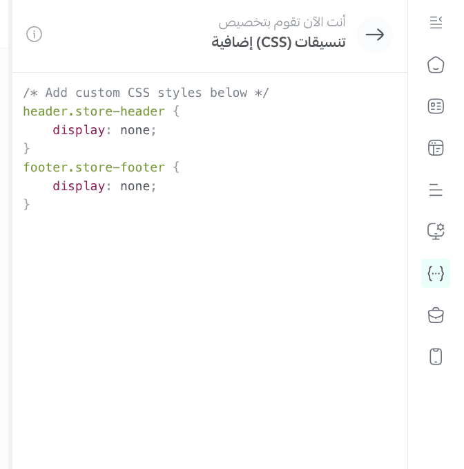 - From the Design Customization menu, click Customize via CSS to hide the header and footer professionally.