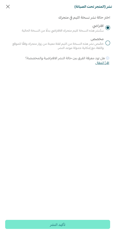 - Select Default as the publishing status