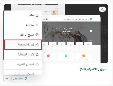 From the theme card, rename the copy by clicking Rename, and change its name to “Store under maintenance.”