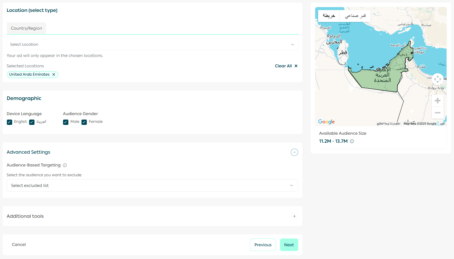 After clicking Next, you will move to the audience targeting section.