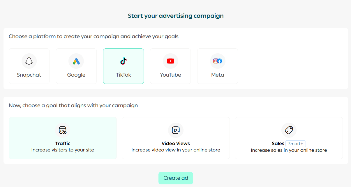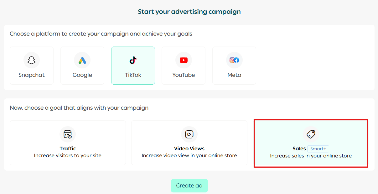 3. Choose TikTok as the advertising platform