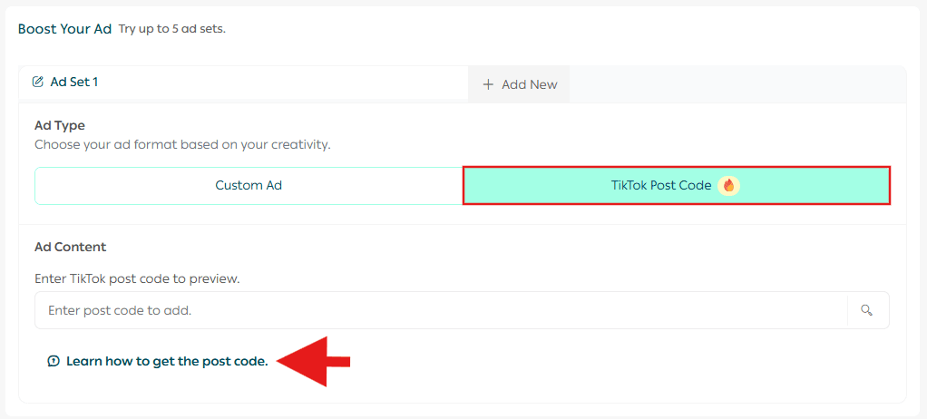 π Note: To learn how to generate a TikTok post code, click Learn how to get the post code.