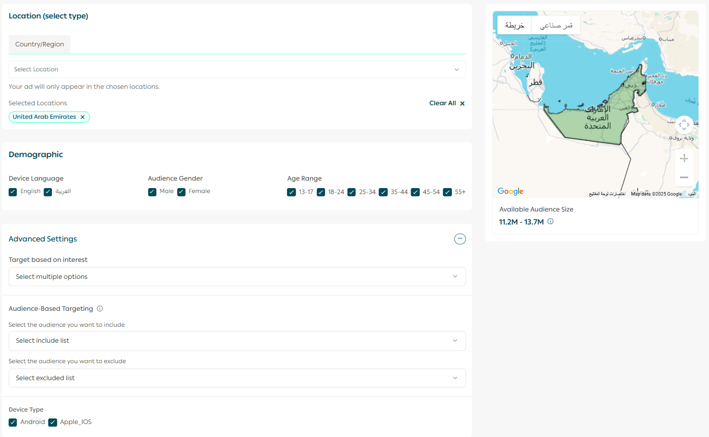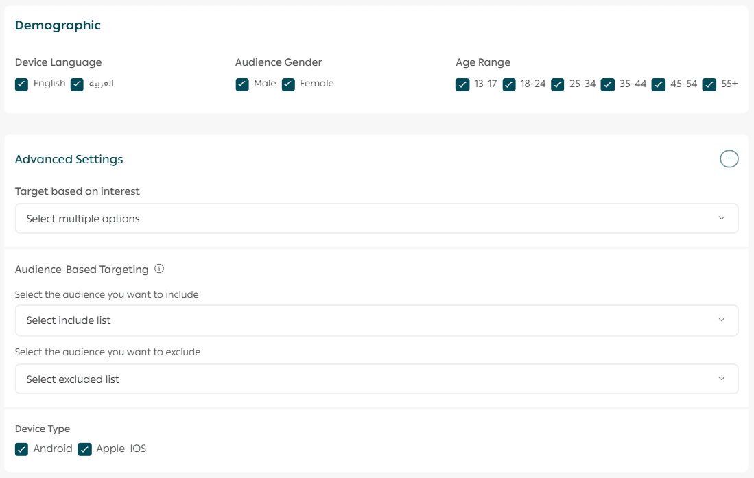 After clicking Next, youβll move to the audience targeting section, where you can define: