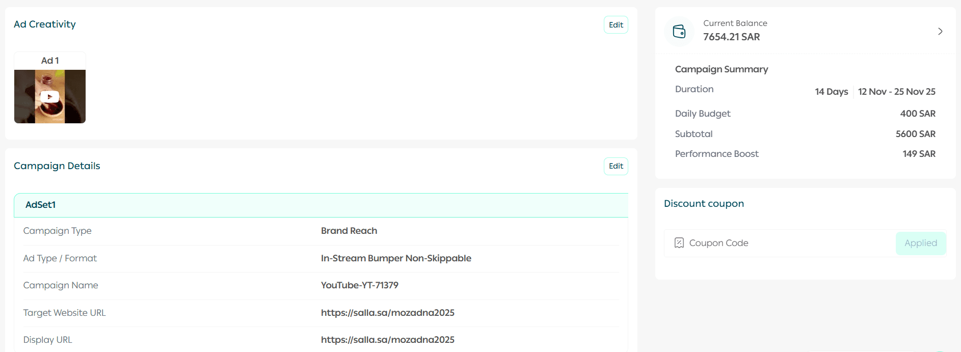 Launch your YouTube advertising campaign today and reach your audience with clarity, precision, and impact through Salla Ads 🚀
