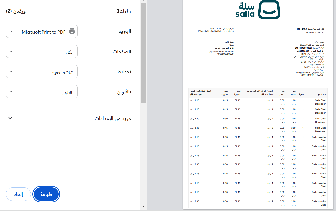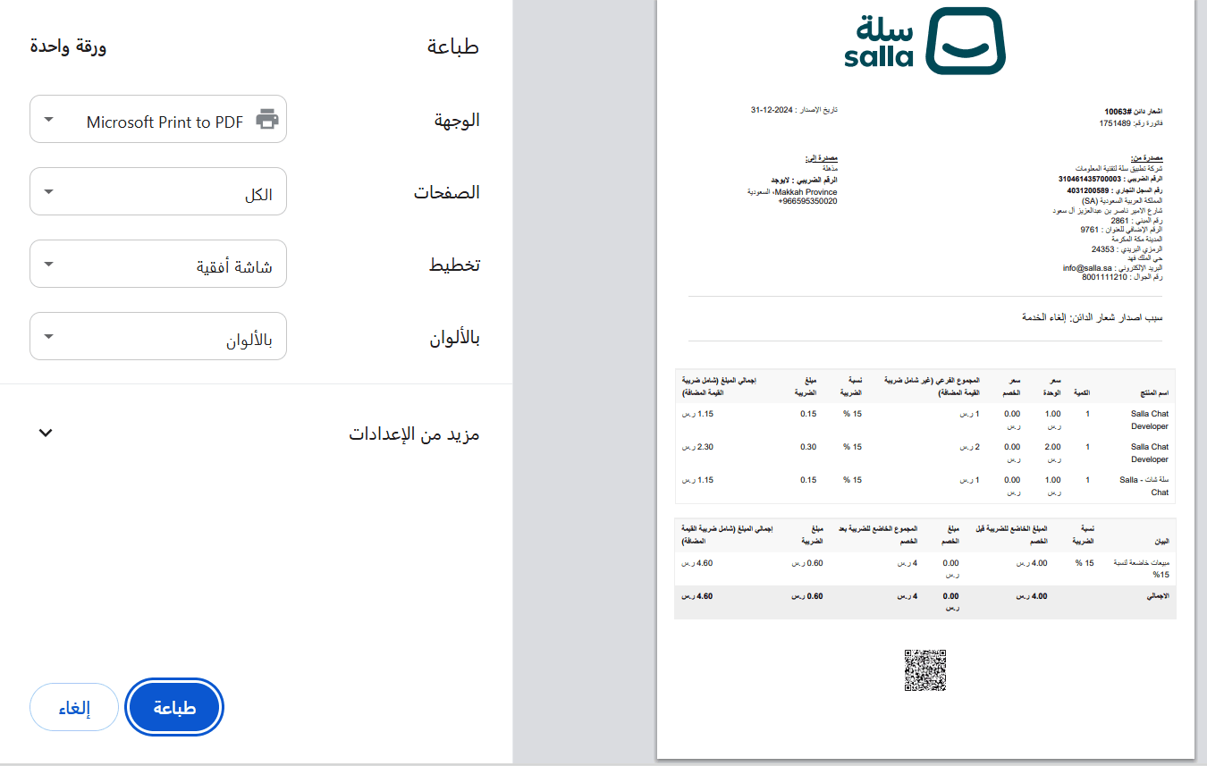 Any purchase of Salla products or services made through electronic payment methods may generate a credit note if refunded or cancelled.