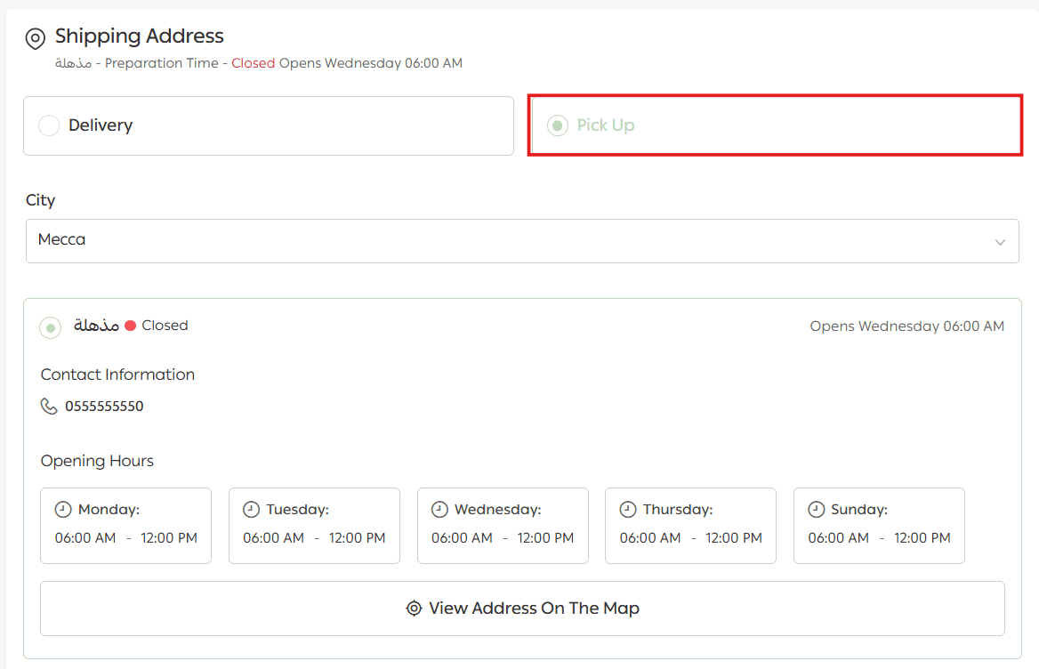 Customers may choose to collect their order directly from a branch if this option is enabled.