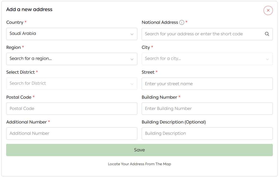 To simplify address selection, customers can also pinpoint their location directly on the map.