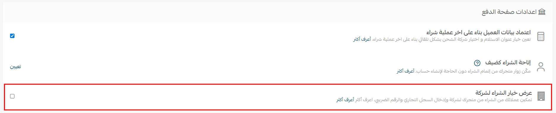 4. At the bottom of the payment methods page, enable Show company purchase option.