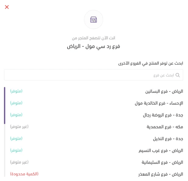 If the product availability check feature is enabled, the customer will see an option on the product details page to check product availability across branches / countries / cities.