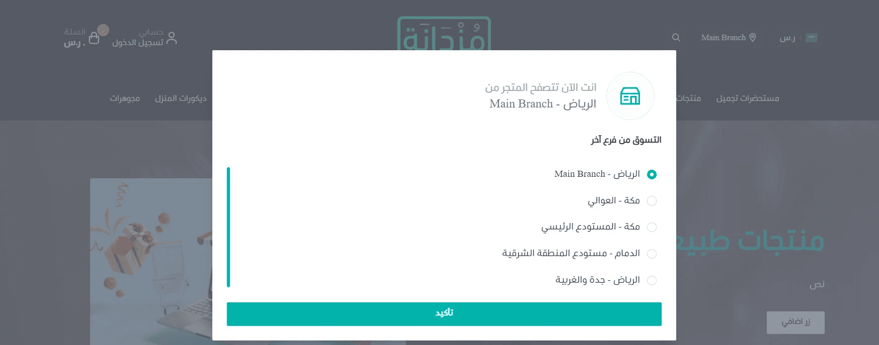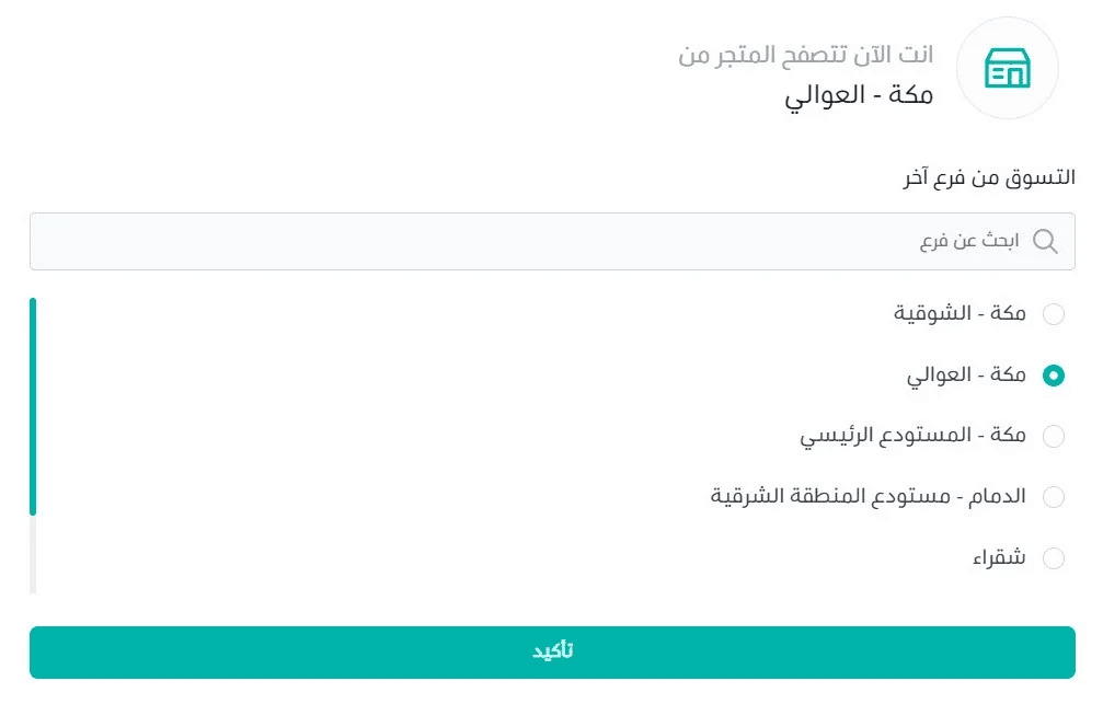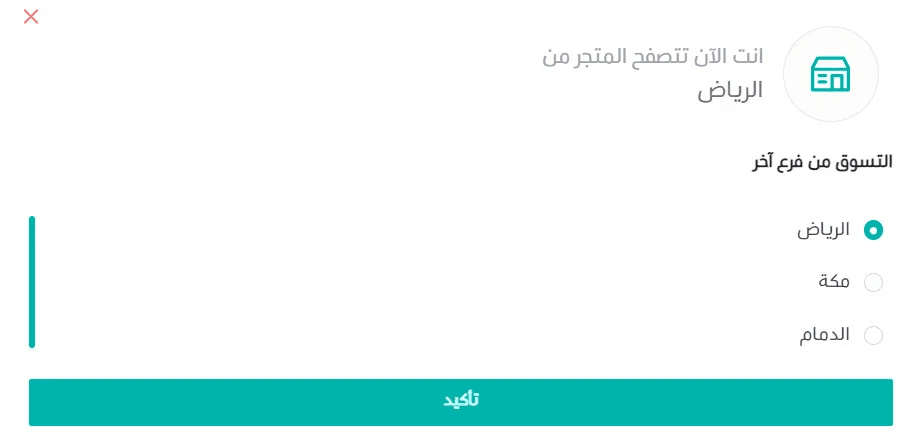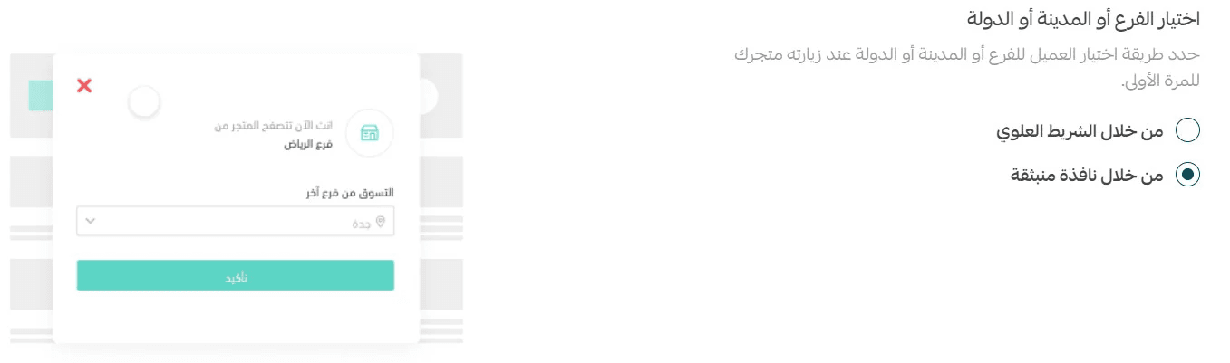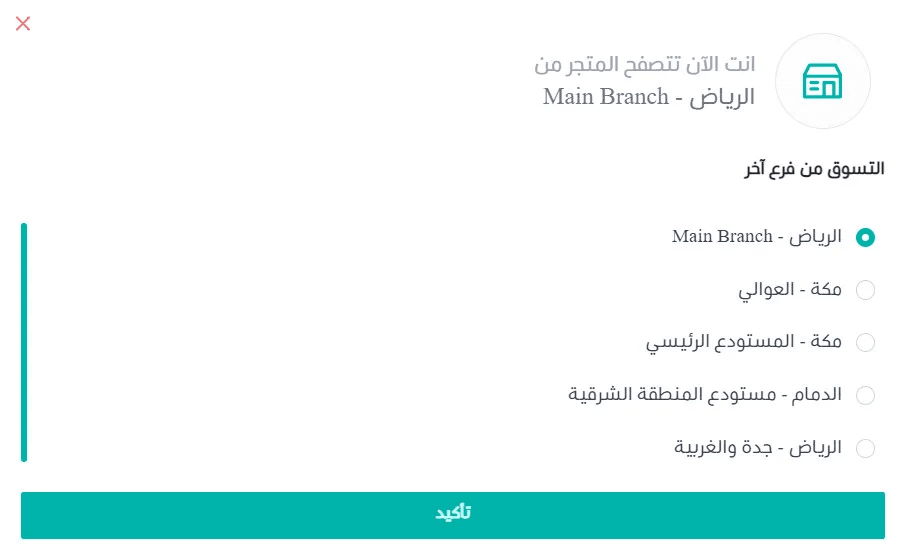 When customers visit the store, a popup prompts them to select a branch before browsing.