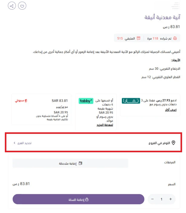 You can enable product availability visibility by showing branch stock status directly on the product page.