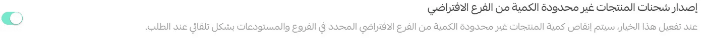 Unlimited stock + feature enabled → deducted from the default branch