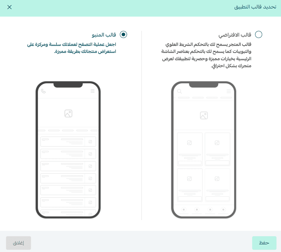 3. Select Menu Template from the available templates, then click Save.