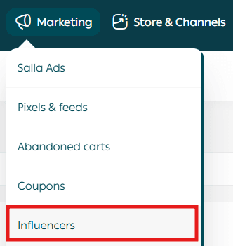 - From the main menu in your Salla dashboard, click Marketing, then select Influencers.