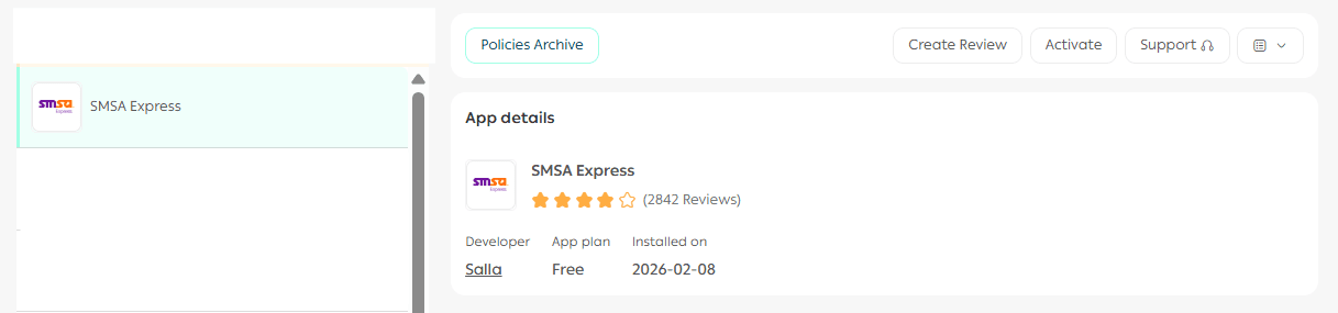 Once completed, the SMSA app will be successfully installed on your store.