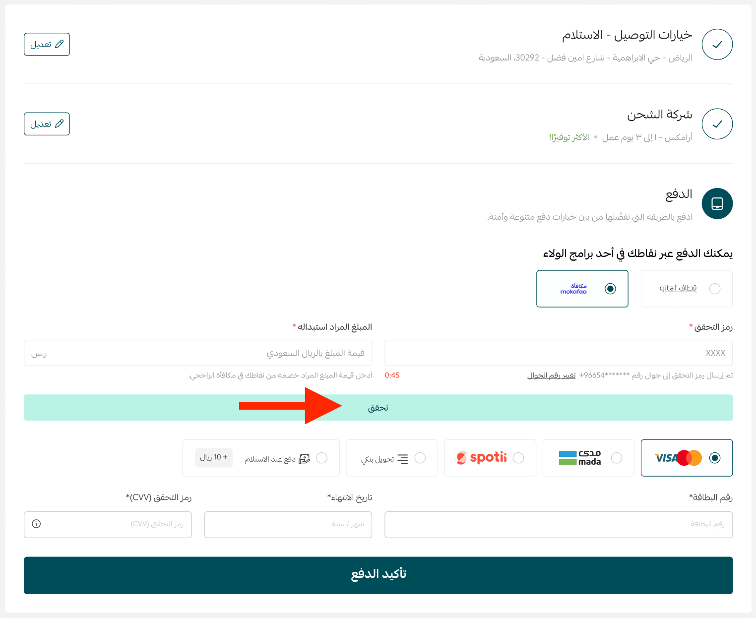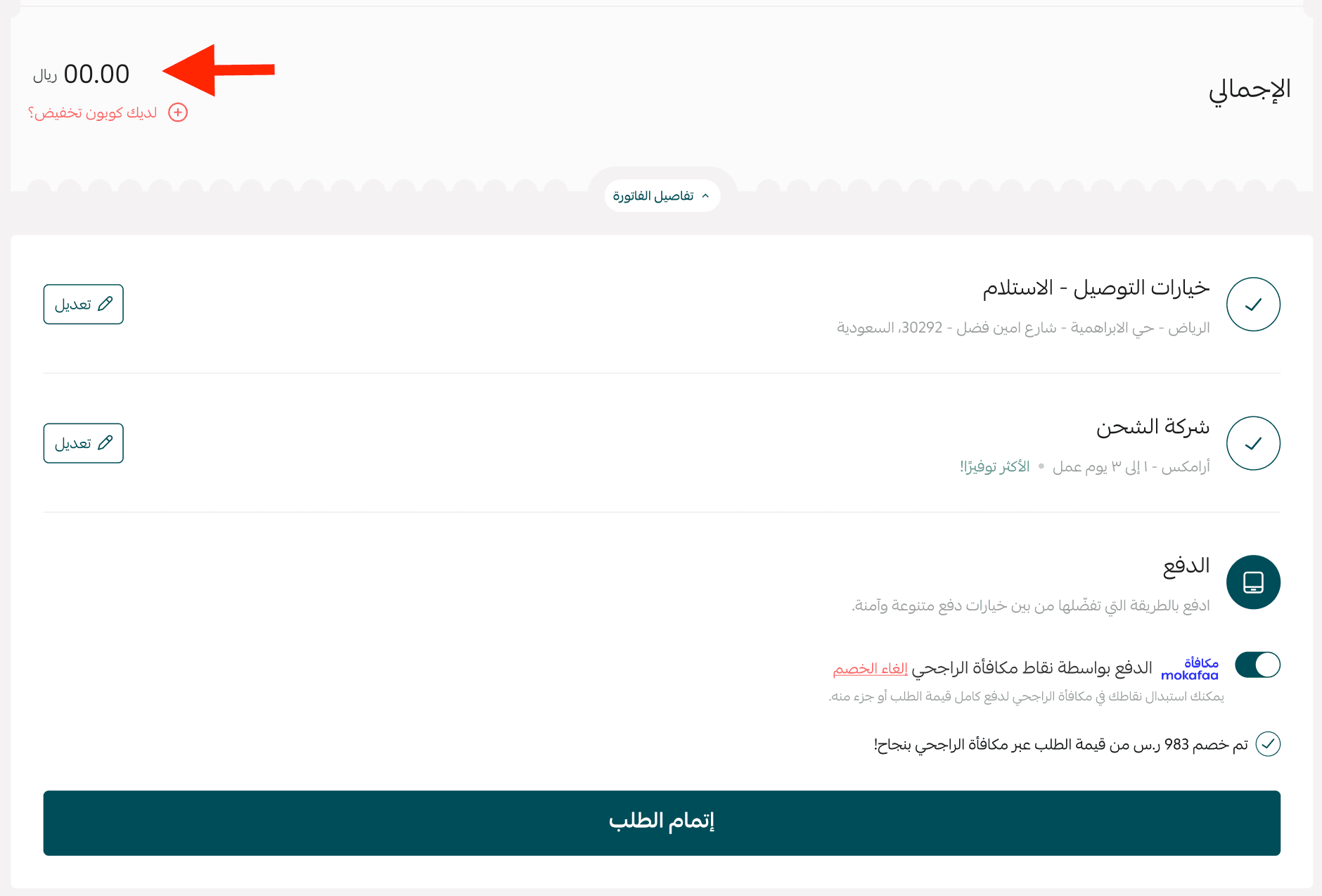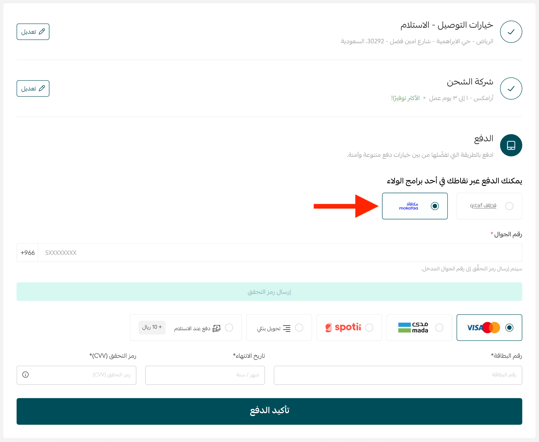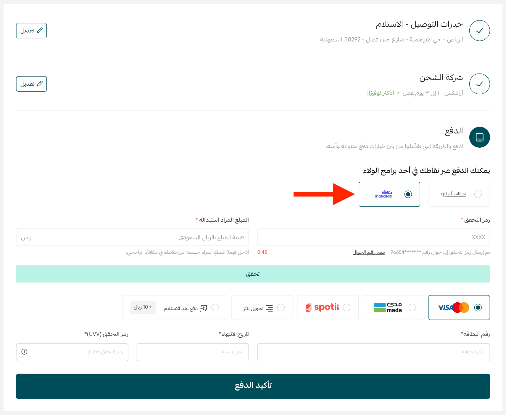 At checkout, the customer can select Al Rajhi Rewards as the payment method.