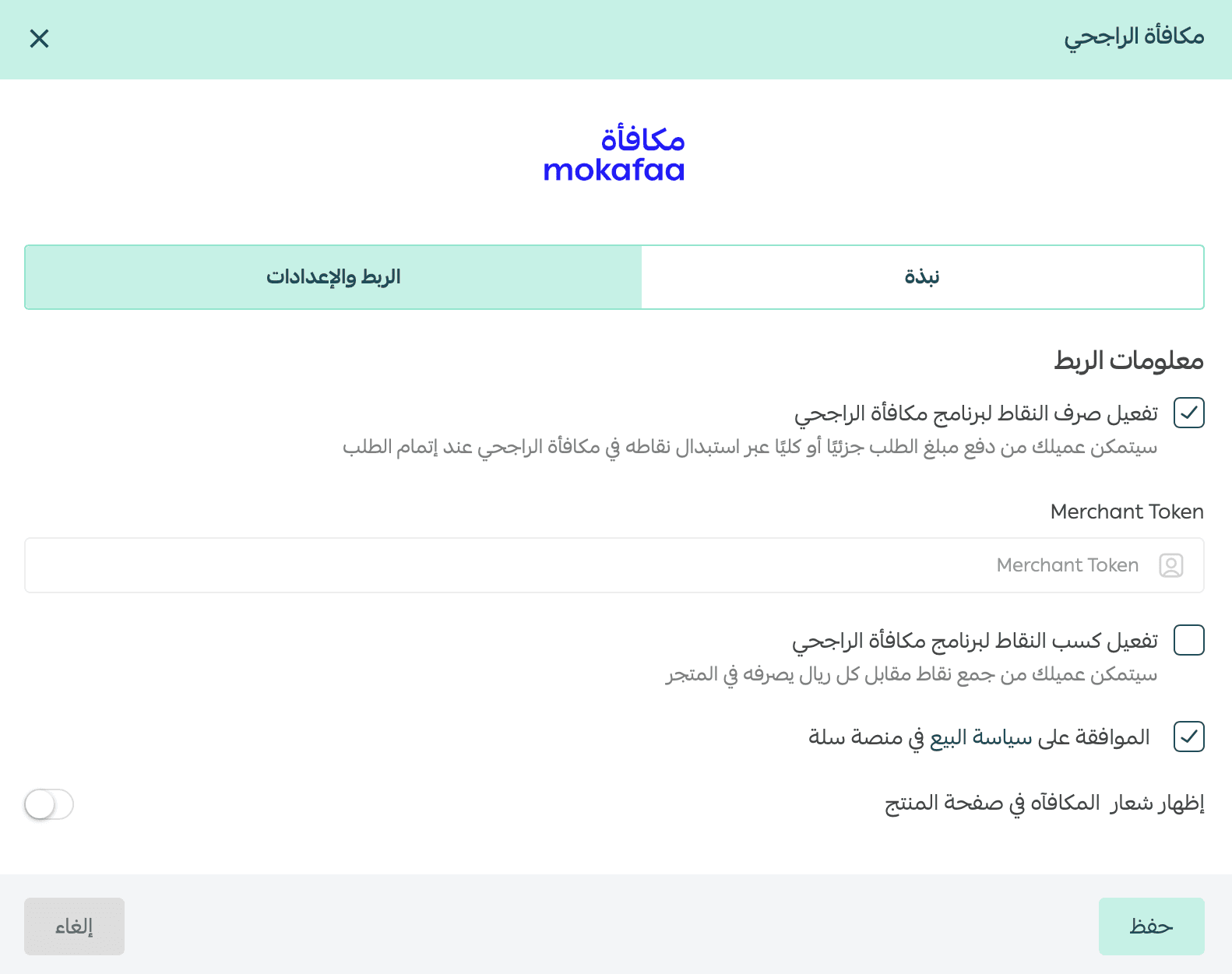 Note: Your merchant token is provided through your Al Rajhi Rewards merchant dashboard.