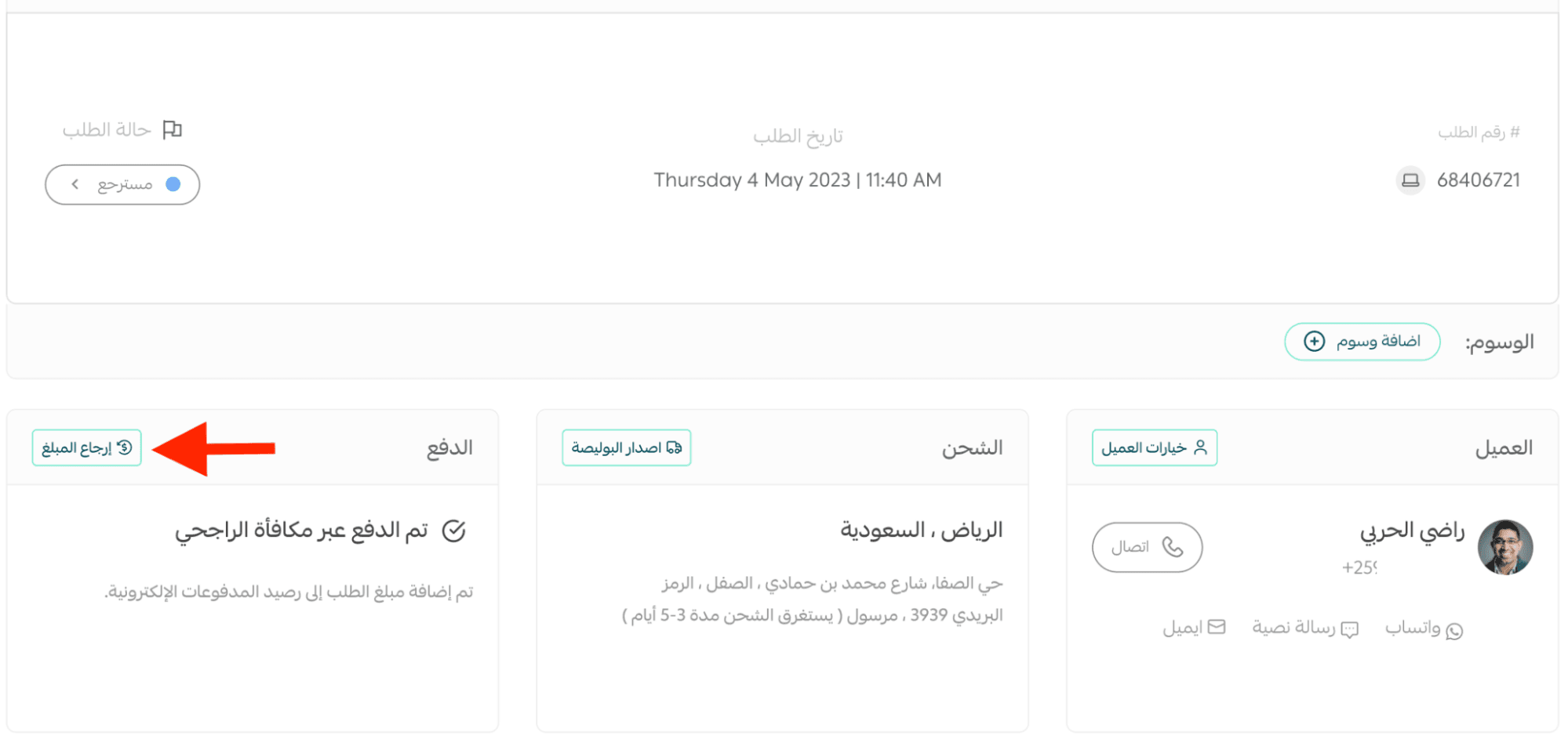 - Change the order status to Refunded
