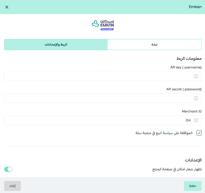 Steps to enable Emkan Buy Now, Pay Later