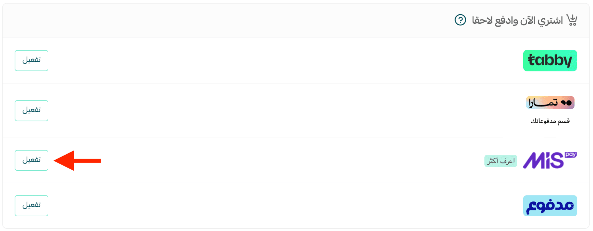 2. On the Payment Methods page, go to the Buy Now, Pay Later section and find Mispay, then click Activate.