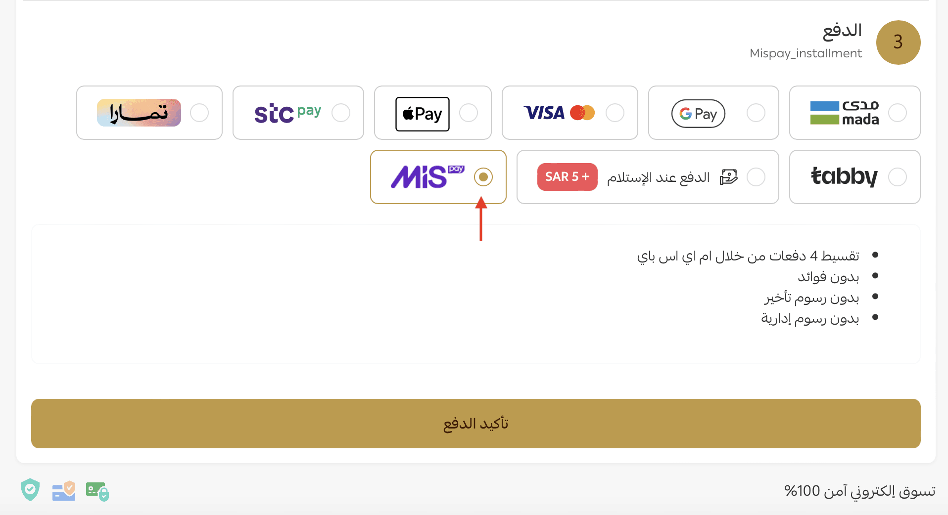 If the cart total exceeds SAR/AED 5,000, Mispay will not appear at checkout.