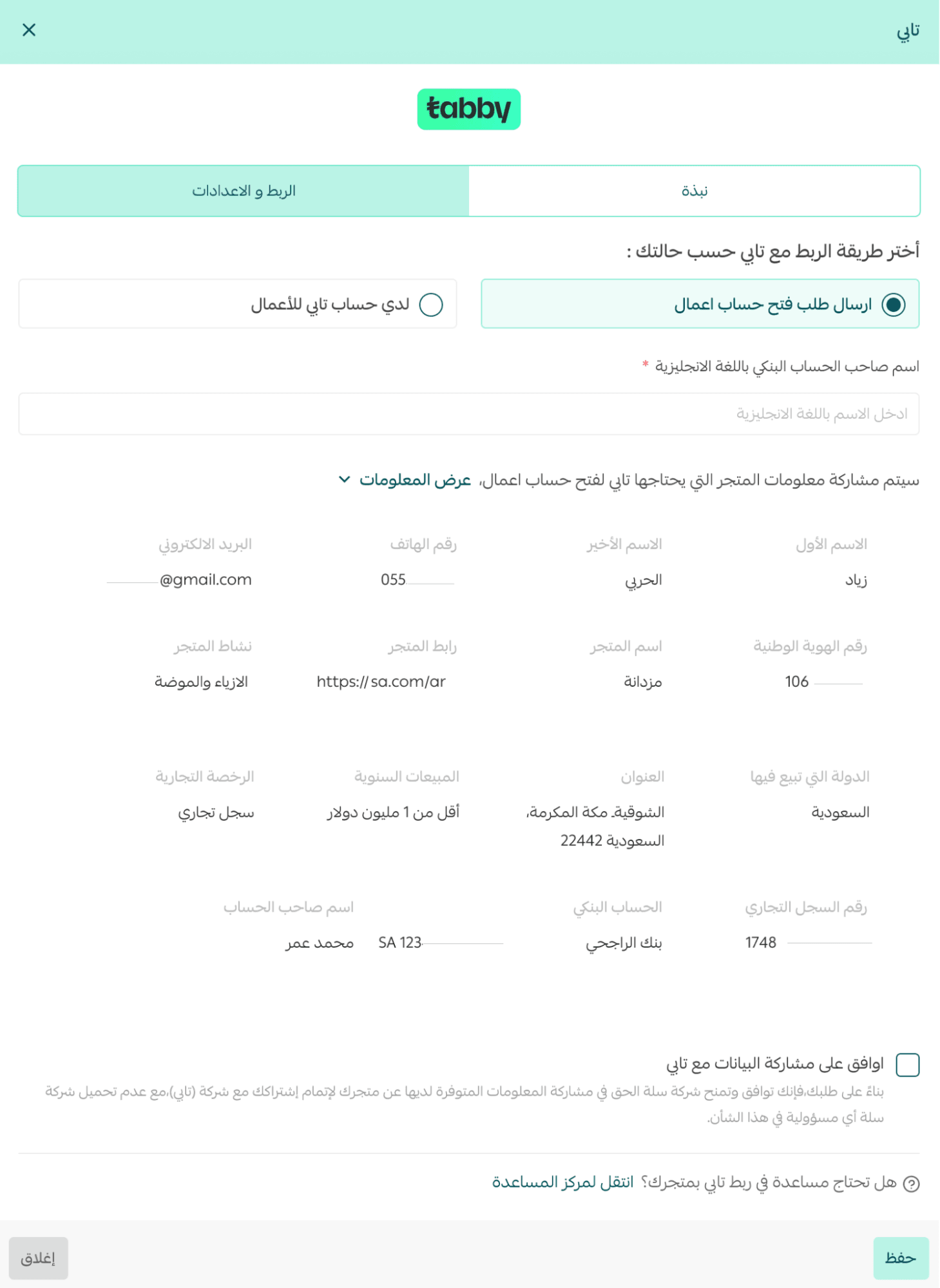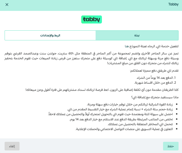 Note: Merchants outside Saudi Arabia must contact Tabby directly to complete account setup.