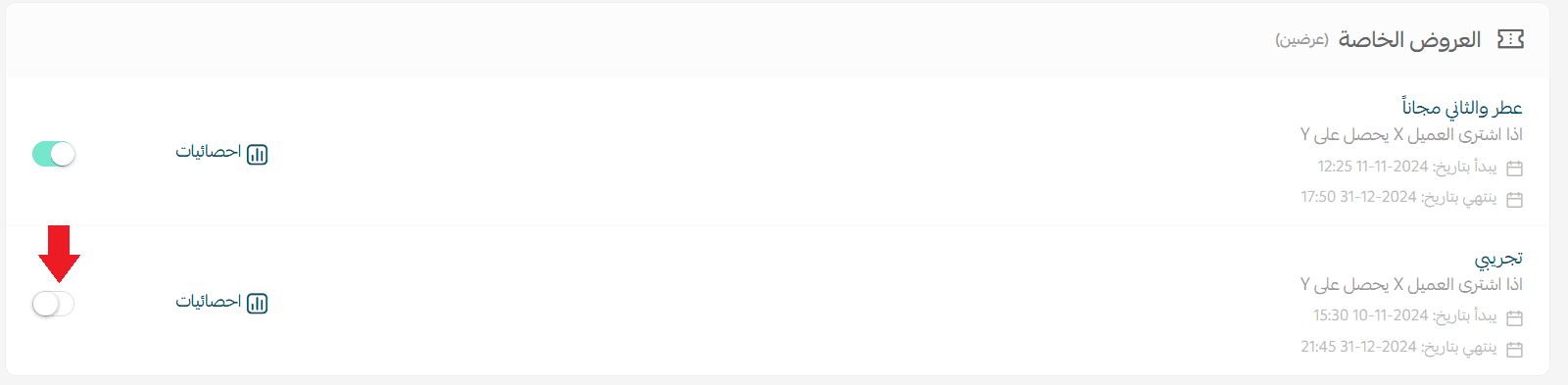 - Re-enable the offer you want to activate again.