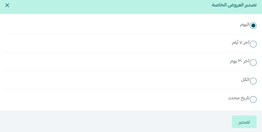 Yes. You can export Special Offer statistics for the following time ranges: