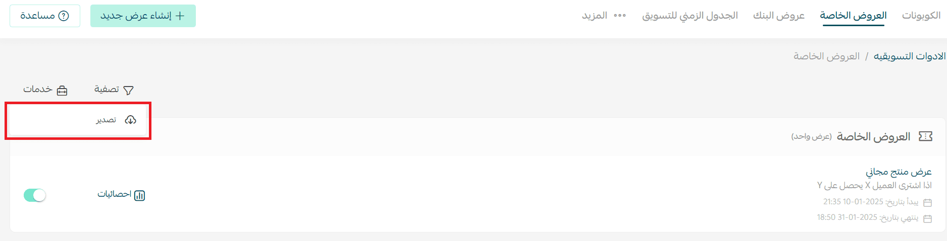 - From the Special Offers page, open the (Services) menu and click (Export).