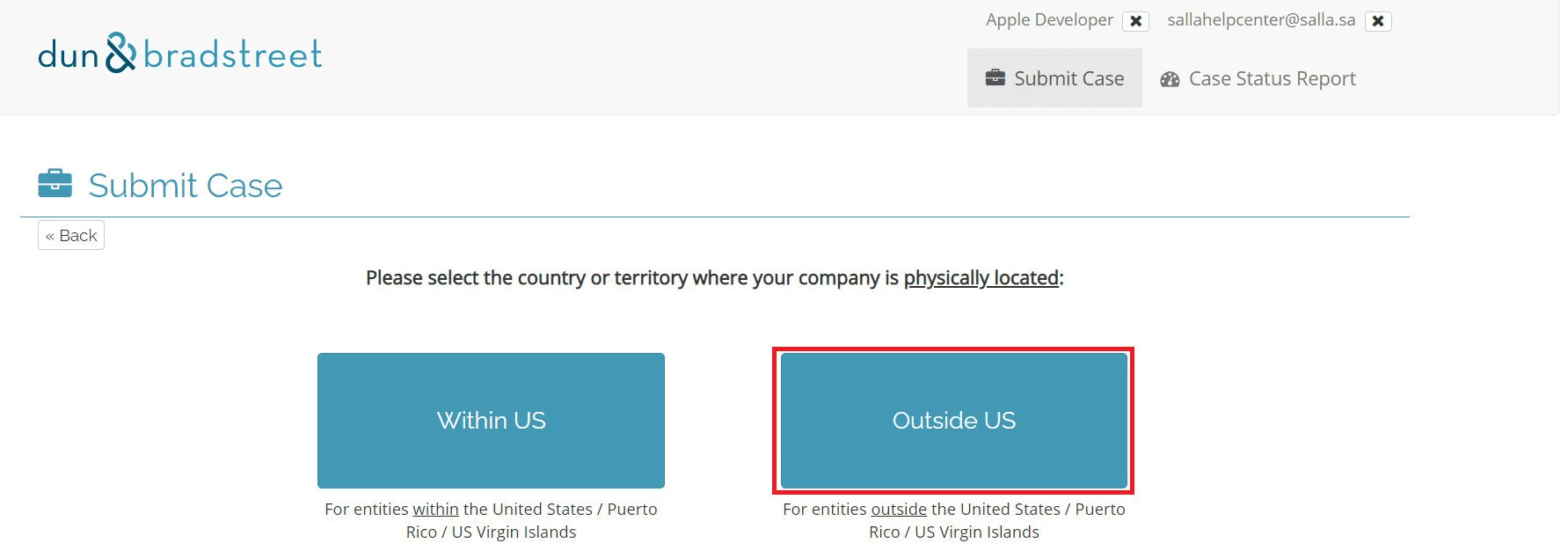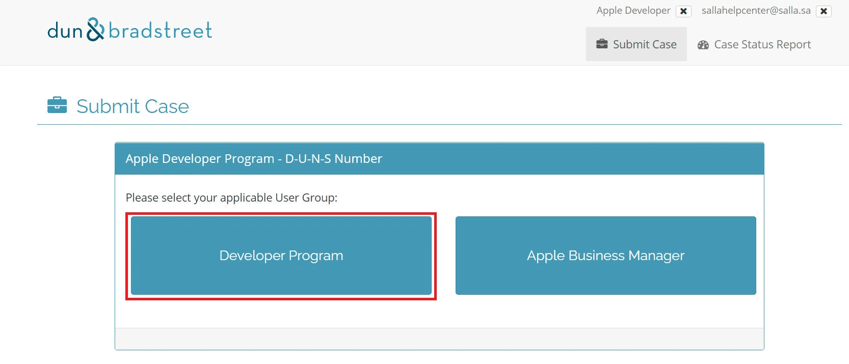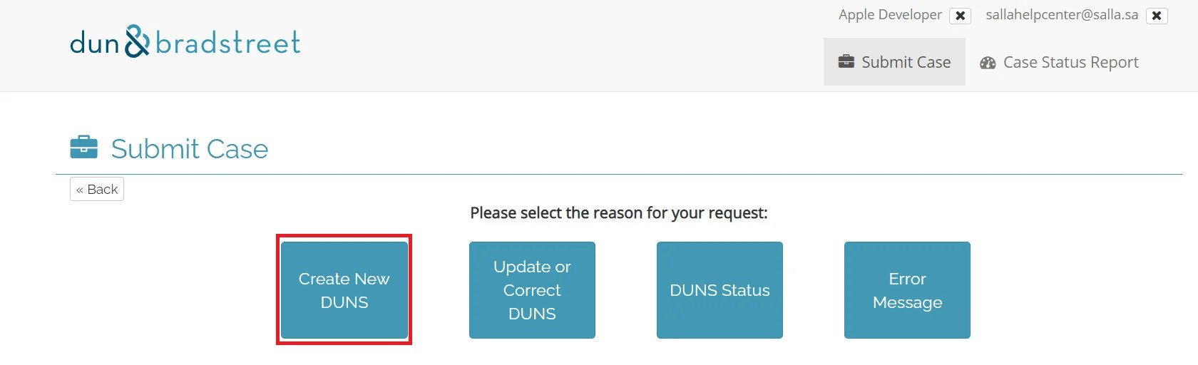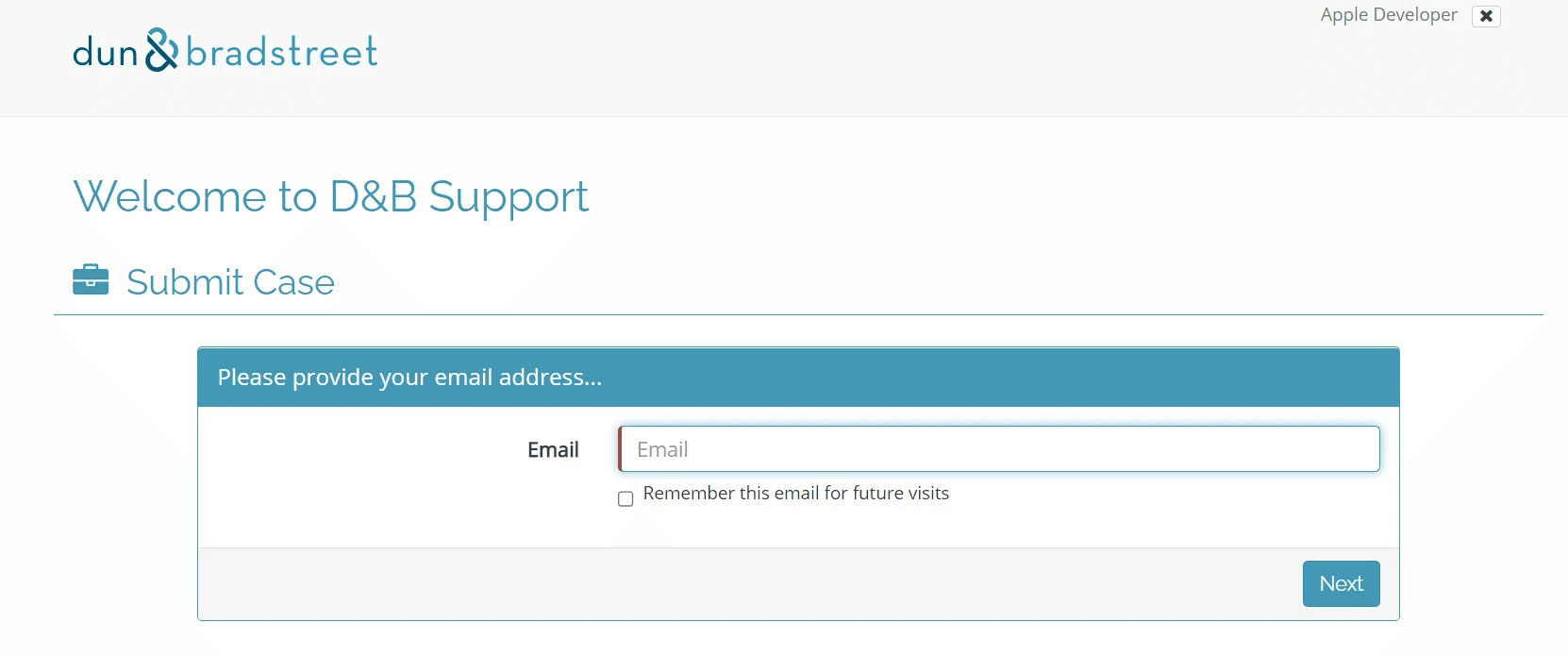 1️⃣ Visit the D-U-N-S support page and enter the same email address used in your original request.