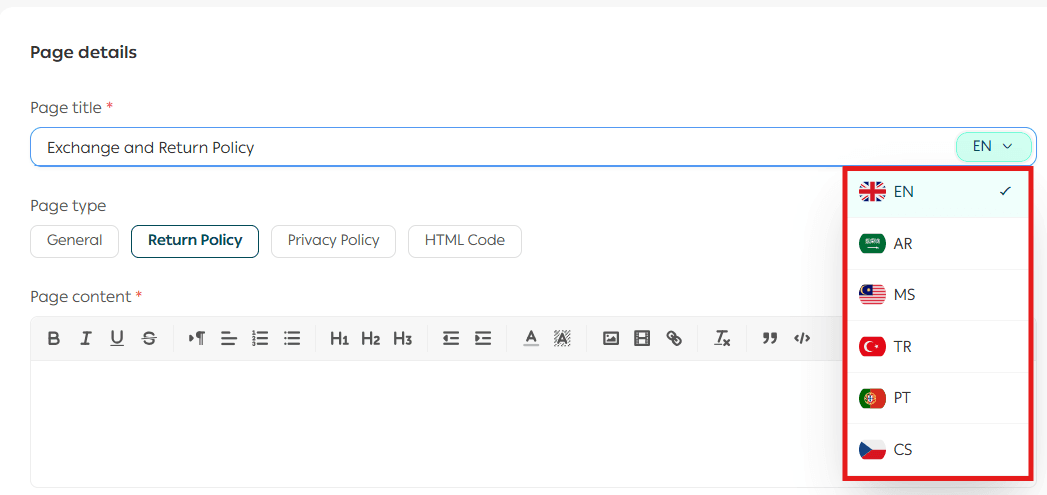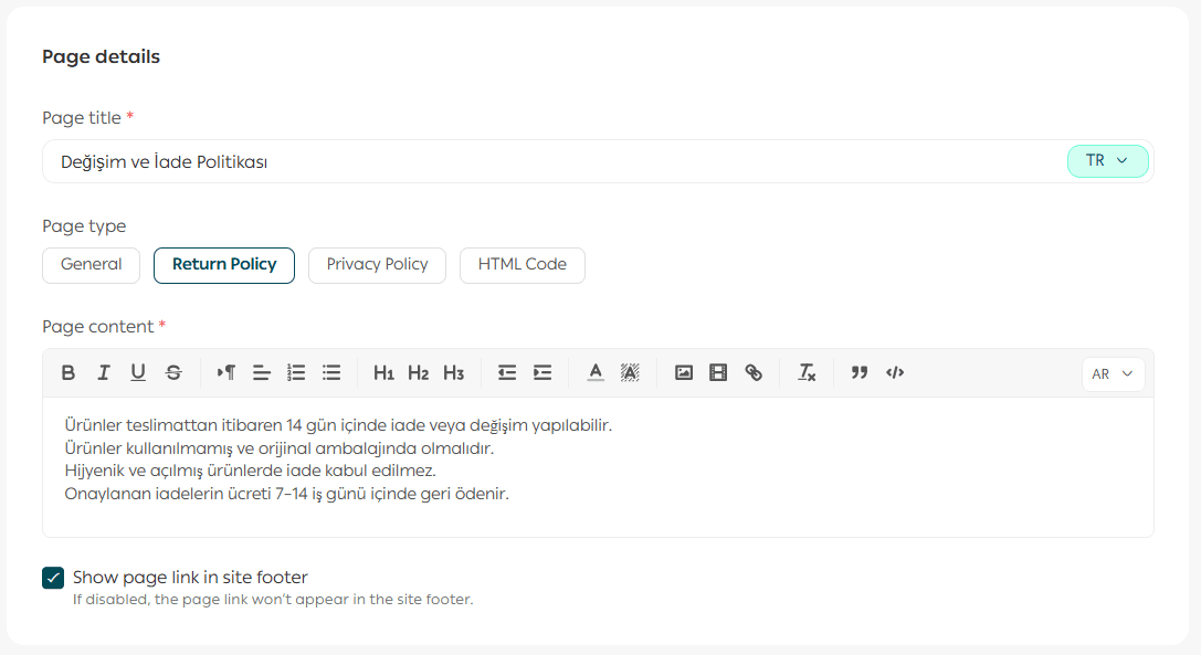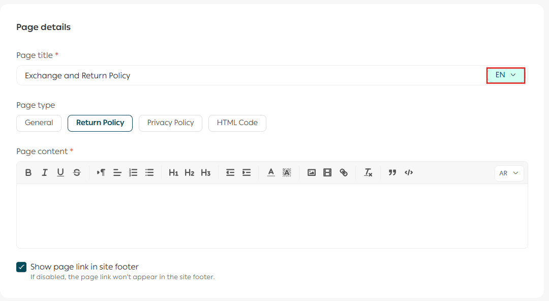 If Arabic is your default language, you can still modify interface wording using the Text Editor to better suit your brand tone.
