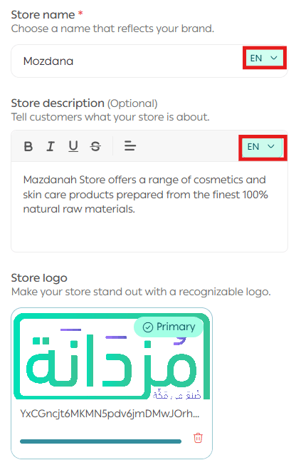 - Entering data in multiple languages means adding content such as interfaces, menus, products, categories, branches, offers, ads, and more in all languages enabled in your store.