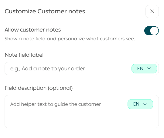 Any text that appears to customers can be translated and customized based on the language they select. This includes, but is not limited to: