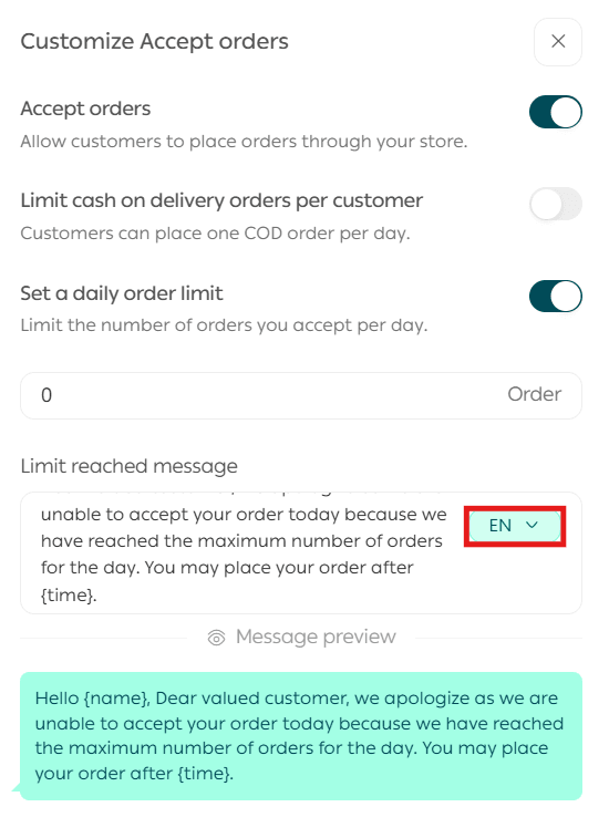3. If instant translation is enabled for the selected language, the default text will appear automatically translated.