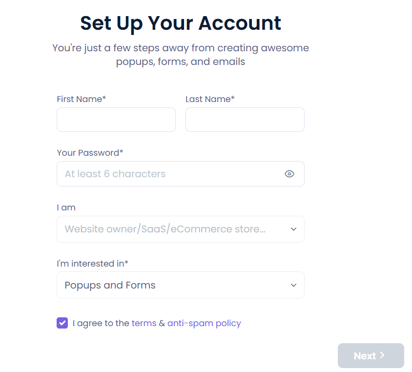 Stage one: Create a new Poptin account