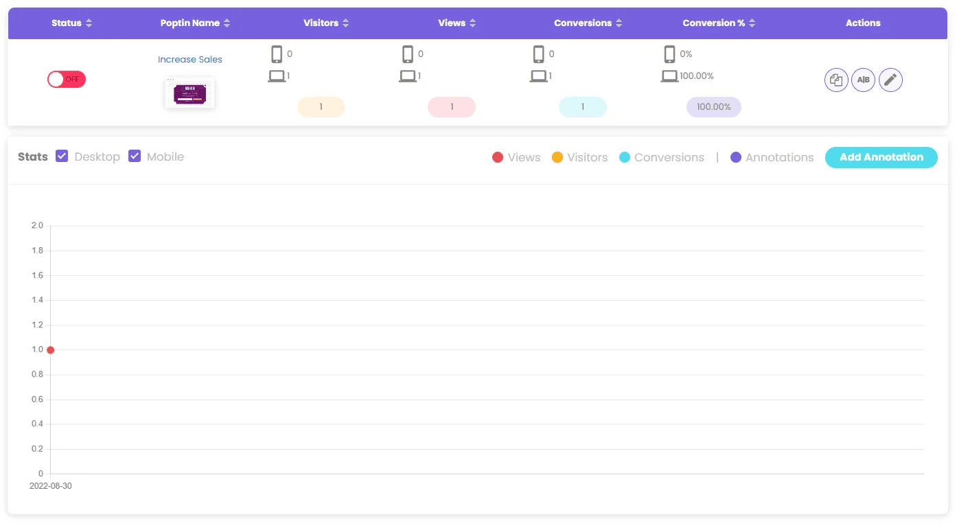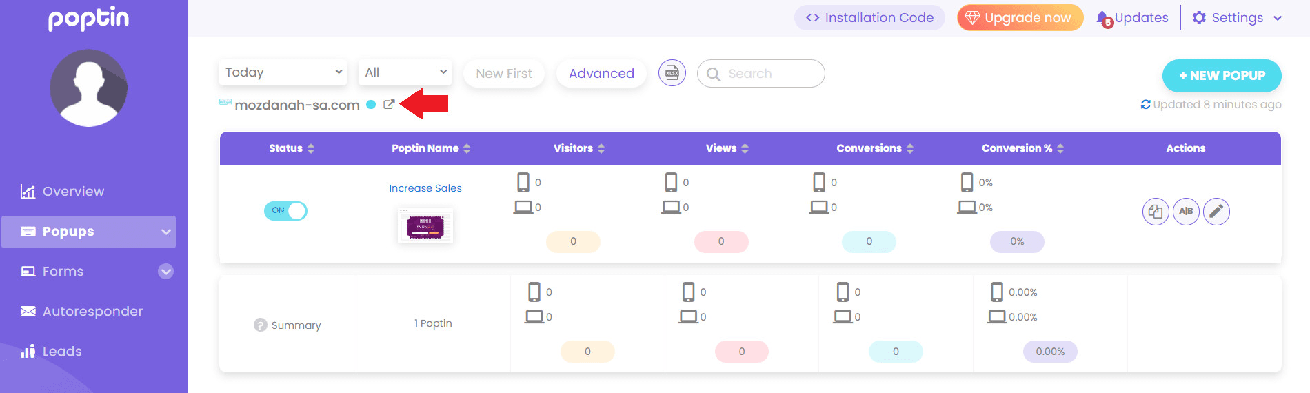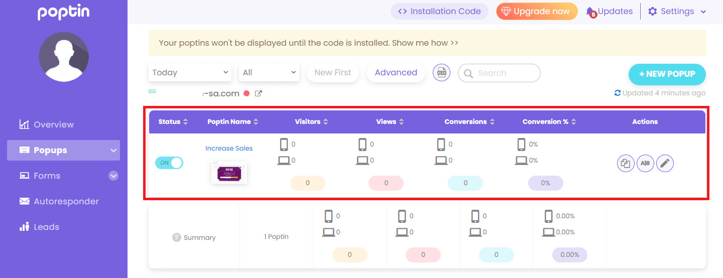 From your Poptin account, click on the pop-up you want to analyze.