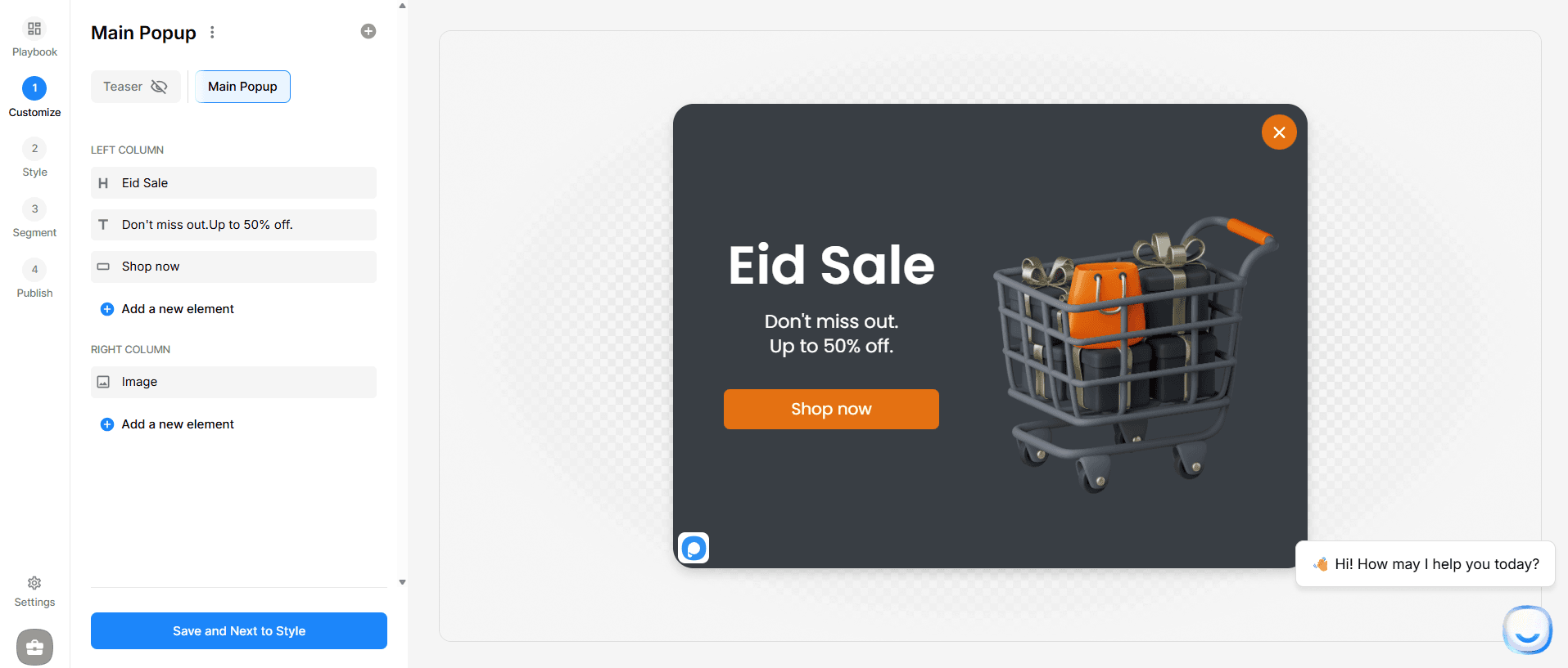 2. Choose the pop-up layout, customize its design, then click Save & Publish