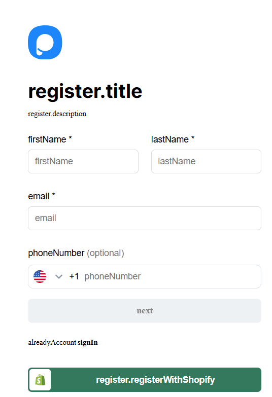 - From the PopupSmart sign-up page, enter your email address, complete the required registration details, then click Next.